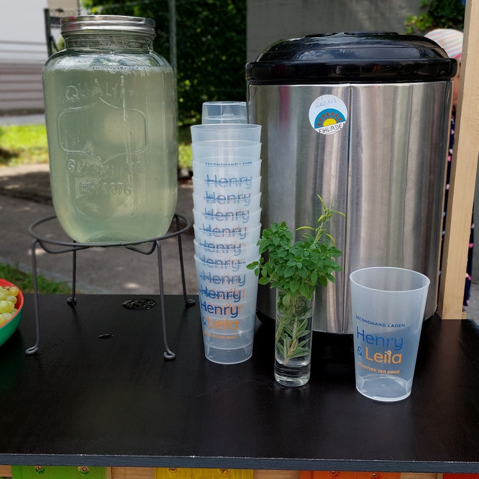 Unser Mitglied Betty hat für den Limonaden-Stand ihrer Tochter allerlei bei Leila ausgeliehen: vom Getränkespender über einen größeren Thermogetränkespender bis hin zu den Henry & Leila Mehrwegbechern. Dank dieser Leihgaben konnte sie nachhaltig und unkompliziert feiern.
