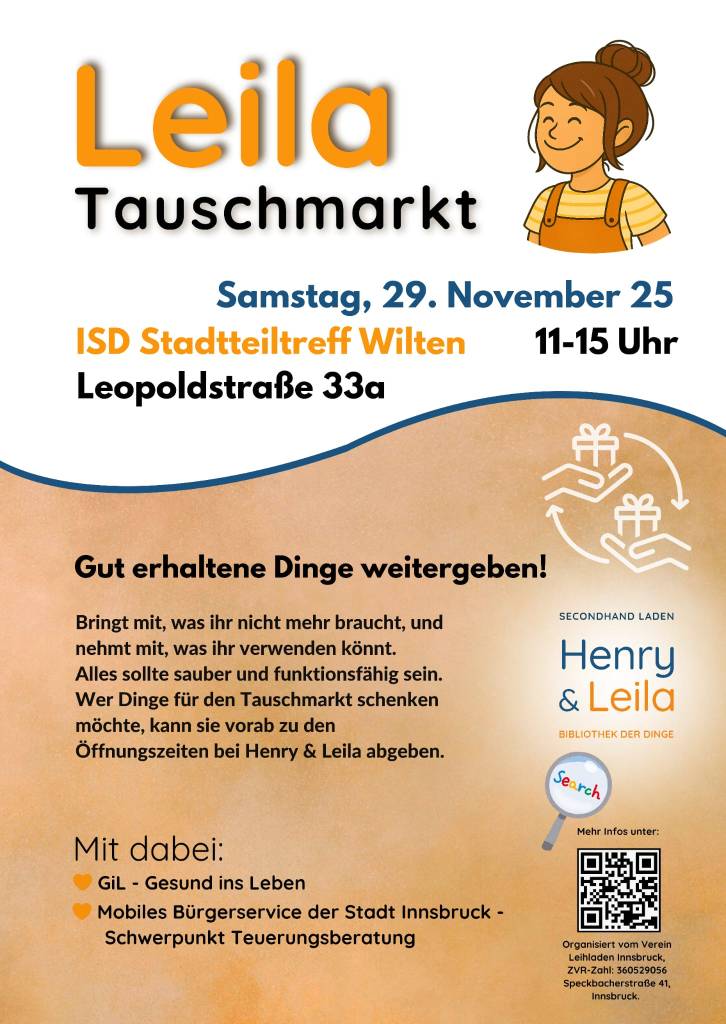 Neben dem Verleih von Gegenständen veranstaltet Leila regelmäßig Events, die zur Kreislaufwirtschaft beitragen – etwa einen Tauschmarkt. Aktuelle Veranstaltungen und Infos zu vergangenen Events findet ihr auf Facebook.